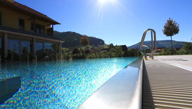Auch an kälteren Tagen können Sie im ganzjährig beheizten Pool Ihre paar Bahnen ziehen.